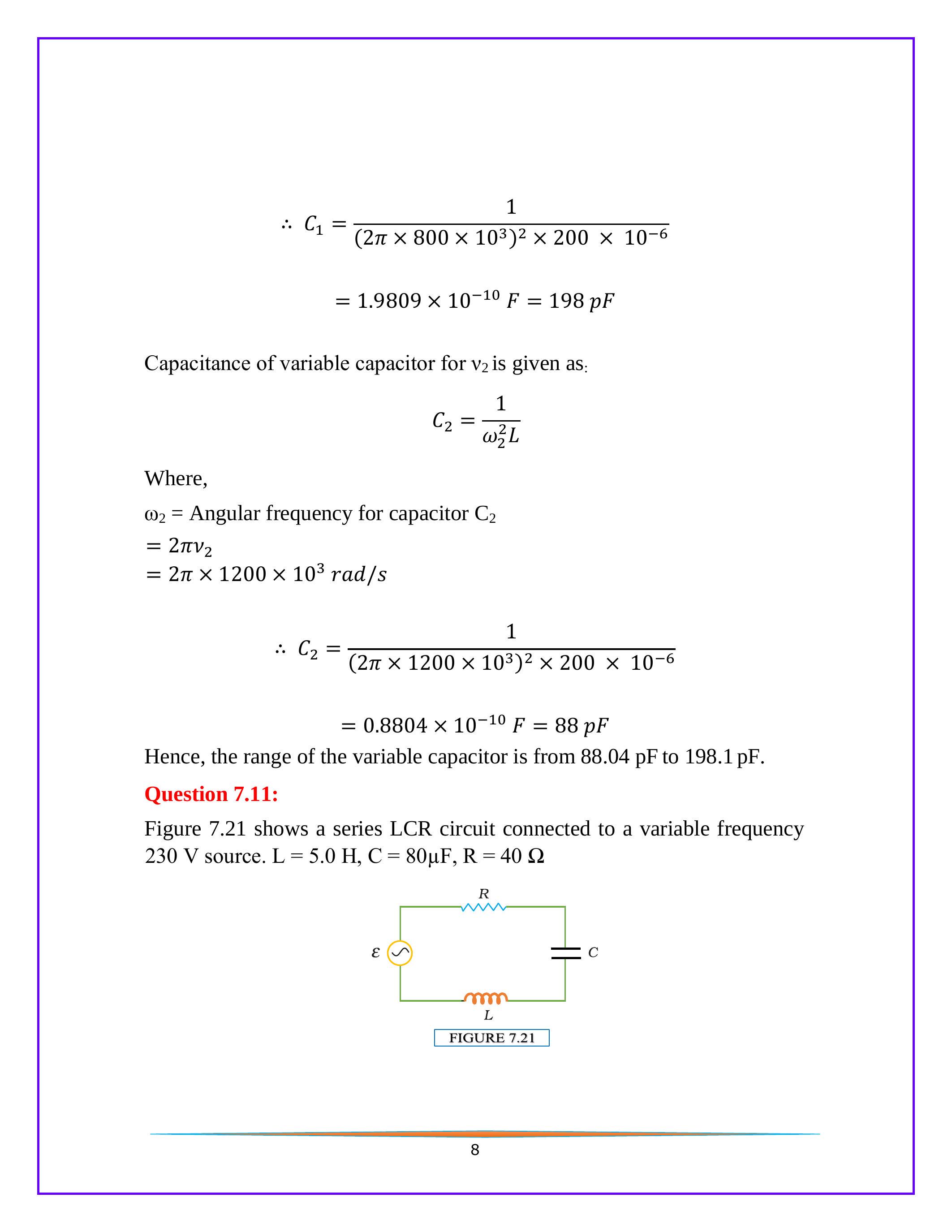 Q. 7.18. A circuit containing a 80 mH inductor and a 60μ F capacitor in series is connected to a 230 V,50 Hz supply. The resistance of the circuit is negligible.