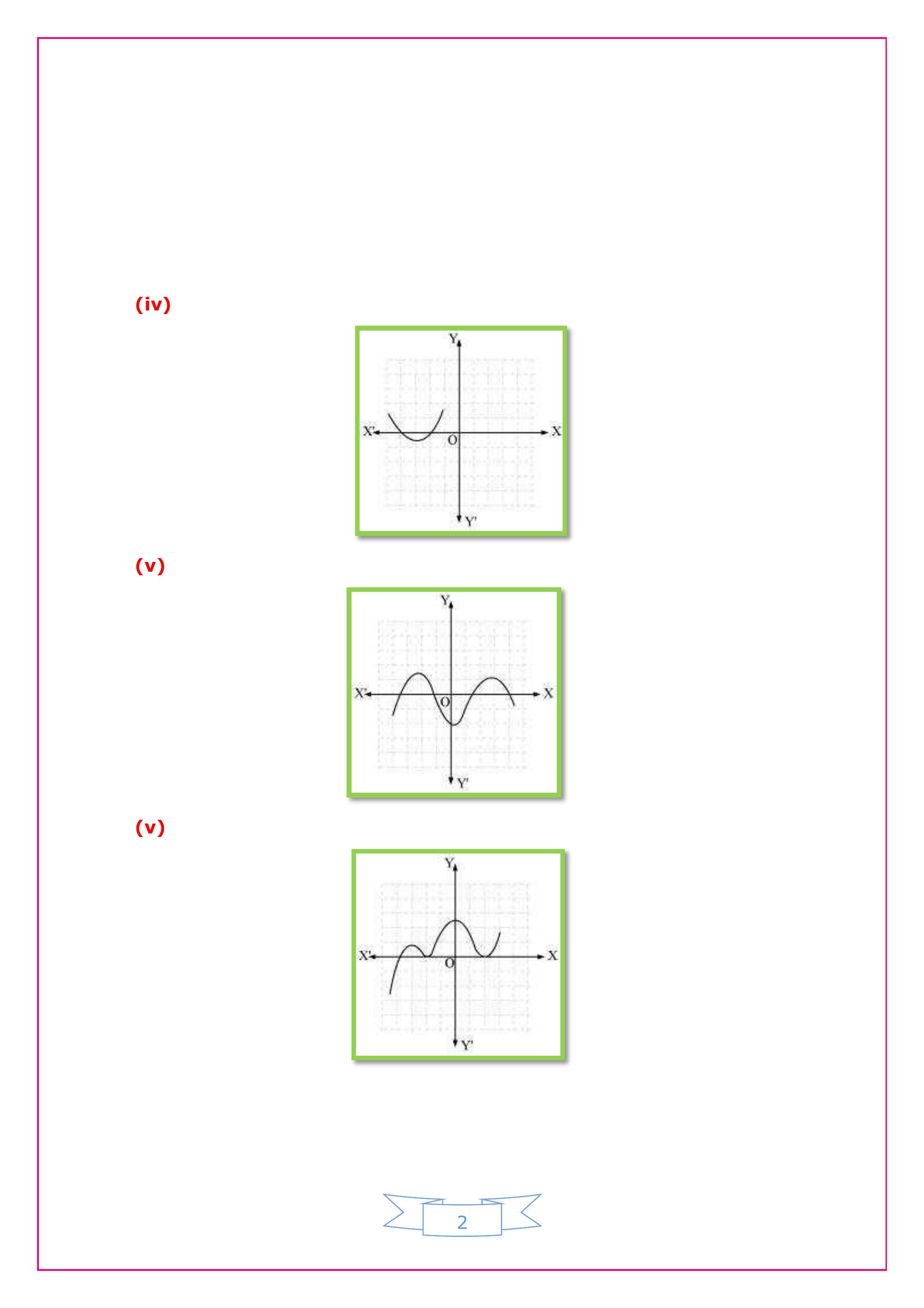 The graphs of y=p(x)y=p(x)y=p(x) are given in following figure, for some polynomials p(x)p(x)p(x). Find the number of zeroes of p(x)p(x)p(x), in each case.(i)(ii)(iii)(iv)(v)(v)